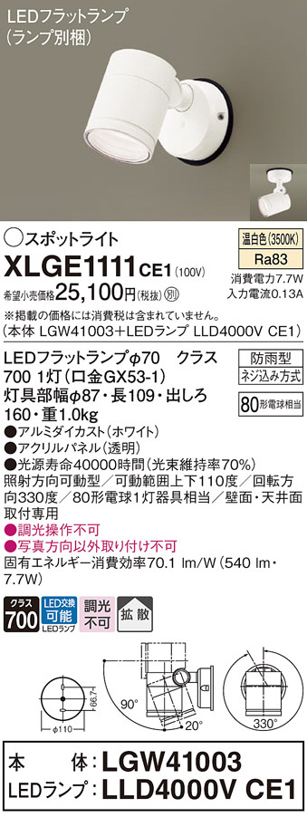 Panasonic ¥¨¥¯¥¹¥Æ¥ê¥¢¥¹¥Ý¥Ã¥È¥é¥¤¥È XLGE1111CE1