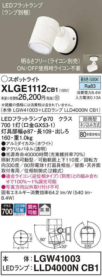 Panasonic ¥¨¥¯¥¹¥Æ¥ê¥¢¥¹¥Ý¥Ã¥È¥é¥¤¥È XLGE1112CB1