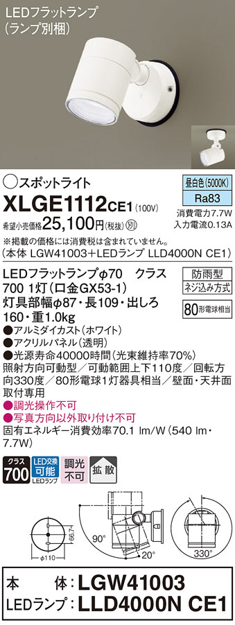 Panasonic ¥¨¥¯¥¹¥Æ¥ê¥¢¥¹¥Ý¥Ã¥È¥é¥¤¥È XLGE1112CE1