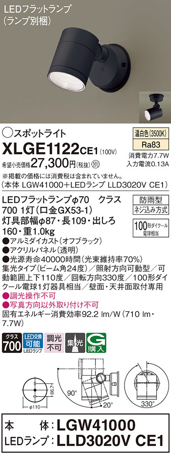 Panasonic ¥¨¥¯¥¹¥Æ¥ê¥¢¥¹¥Ý¥Ã¥È¥é¥¤¥È XLGE1122CE1