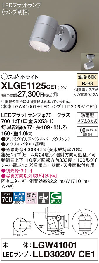 Panasonic ¥¨¥¯¥¹¥Æ¥ê¥¢¥¹¥Ý¥Ã¥È¥é¥¤¥È XLGE1125CE1