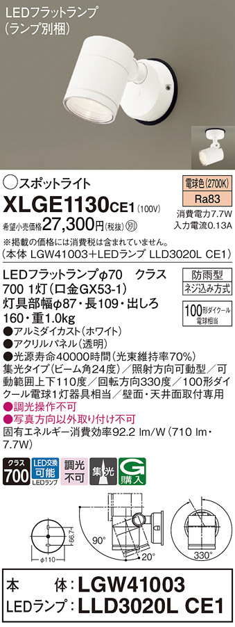 Panasonic ¥¨¥¯¥¹¥Æ¥ê¥¢¥¹¥Ý¥Ã¥È¥é¥¤¥È XLGE1130CE1