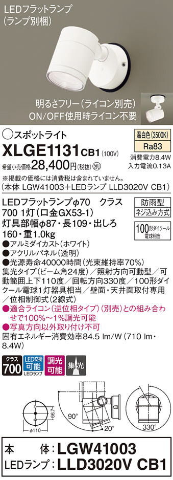 Panasonic ¥¨¥¯¥¹¥Æ¥ê¥¢¥¹¥Ý¥Ã¥È¥é¥¤¥È XLGE1131CB1