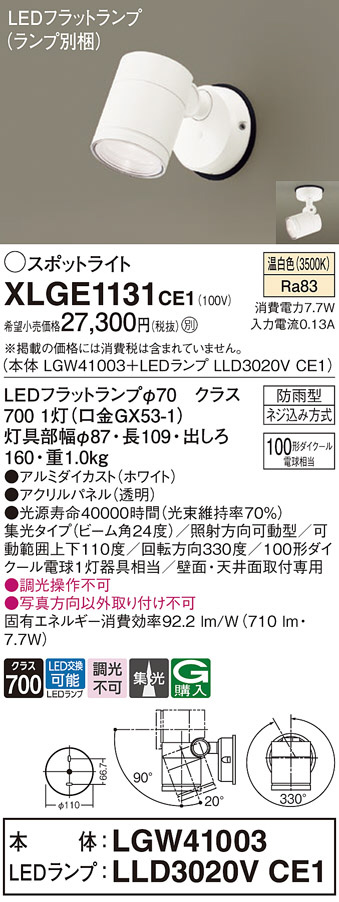 Panasonic ¥¨¥¯¥¹¥Æ¥ê¥¢¥¹¥Ý¥Ã¥È¥é¥¤¥È XLGE1131CE1
