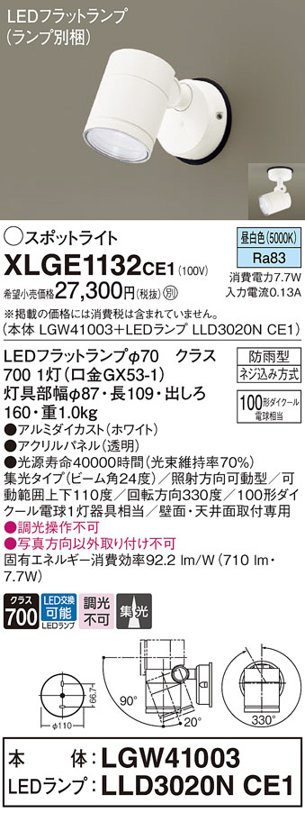 Panasonic ¥¨¥¯¥¹¥Æ¥ê¥¢¥¹¥Ý¥Ã¥È¥é¥¤¥È XLGE1132CE1