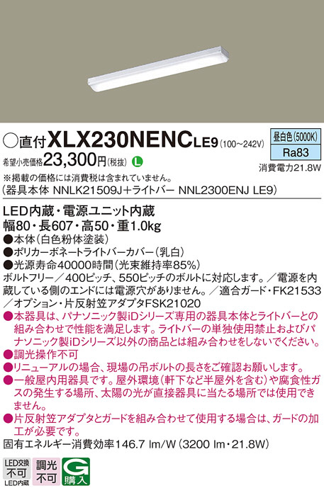 Panasonic ¥Ù¡¼¥¹¥é¥¤¥È XLX230NENCLE9