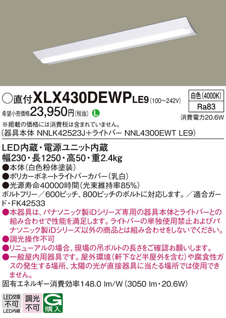 Panasonic ¥Ù¡¼¥¹¥é¥¤¥È XLX430DEWPLE9