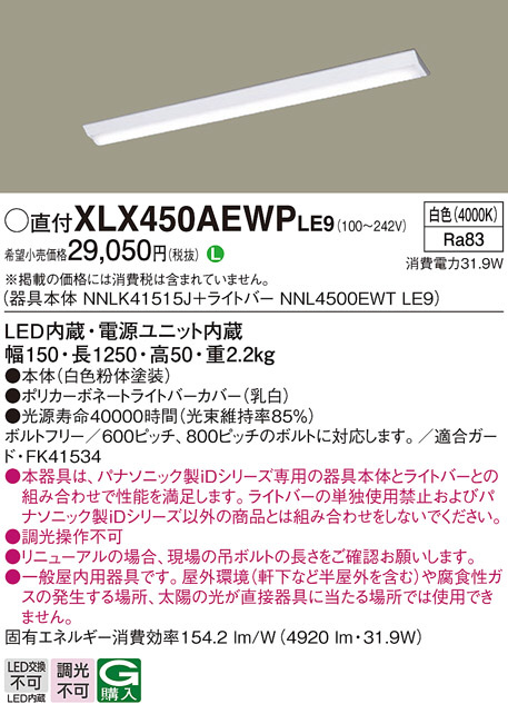 Panasonic ¥Ù¡¼¥¹¥é¥¤¥È XLX450AEWPLE9