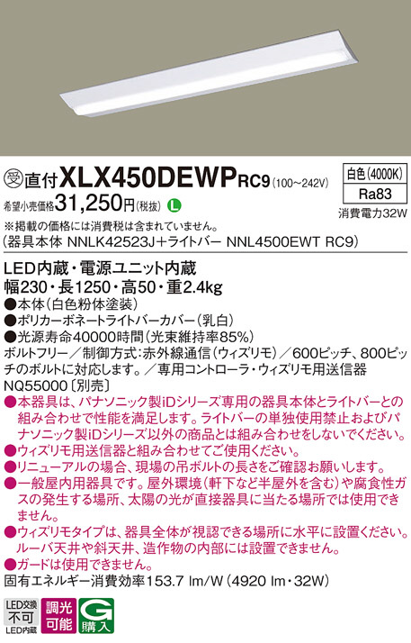 Panasonic ¥Ù¡¼¥¹¥é¥¤¥È XLX450DEWPRC9