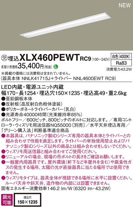 Panasonic ¥Ù¡¼¥¹¥é¥¤¥È XLX460PEWTRC9