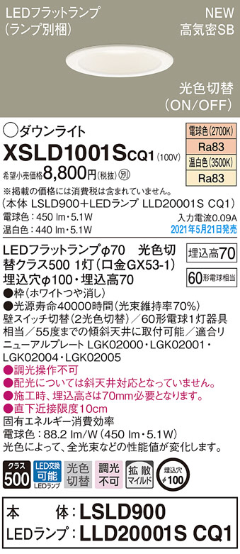Panasonic ¥À¥¦¥ó¥é¥¤¥È XSLD1001SCQ1