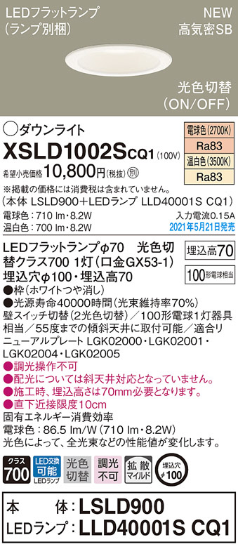Panasonic ¥À¥¦¥ó¥é¥¤¥È XSLD1002SCQ1