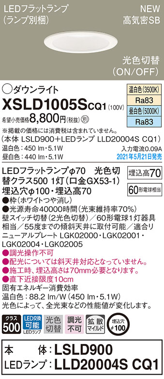 Panasonic ¥À¥¦¥ó¥é¥¤¥È XSLD1005SCQ1