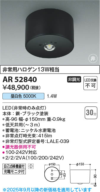 Koizumi ¥³¥¤¥º¥ß¾ÈÌÀ LEDÈó¾ïÅô AR52840