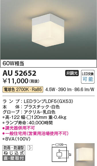 Koizumi ¥³¥¤¥º¥ß¾ÈÌÀ LEDËɱ«Ëɼ¾·¿¥Ö¥é¥±¥Ã¥È AU52652