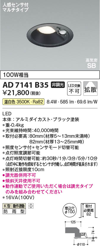 Koizumi ¥³¥¤¥º¥ß¾ÈÌÀ LED¹âµ¤Ì©SB¥À¥¦¥ó¥é¥¤¥È AD7141B35