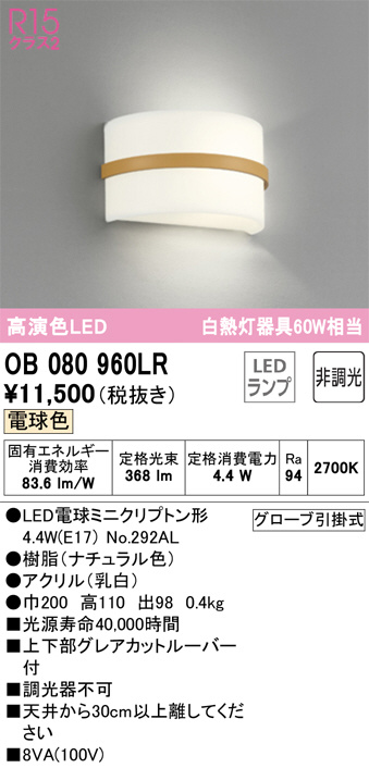 ODELIC ¥ª¡¼¥Ç¥ê¥Ã¥¯ ¥Ö¥é¥±¥Ã¥È OB080960LR
