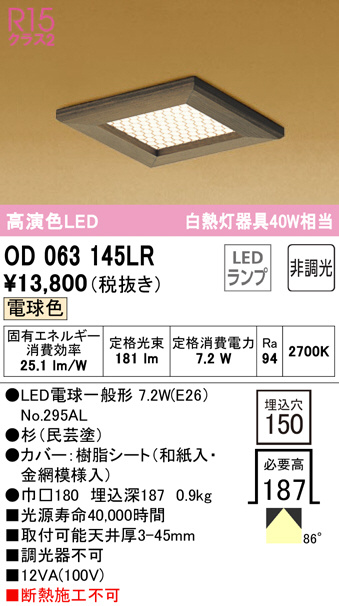 ODELIC ¥ª¡¼¥Ç¥ê¥Ã¥¯ ¥À¥¦¥ó¥é¥¤¥È OD063145LR
