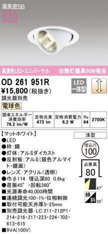ODELIC ¥ª¡¼¥Ç¥ê¥Ã¥¯ ¥À¥¦¥ó¥é¥¤¥È OD261951R