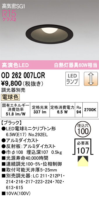 ODELIC ¥ª¡¼¥Ç¥ê¥Ã¥¯ ¥À¥¦¥ó¥é¥¤¥È OD262007LCR