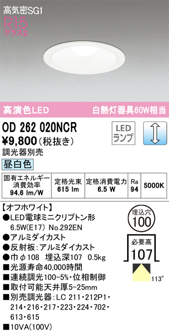 ODELIC ¥ª¡¼¥Ç¥ê¥Ã¥¯ ¥À¥¦¥ó¥é¥¤¥È OD262020NCR
