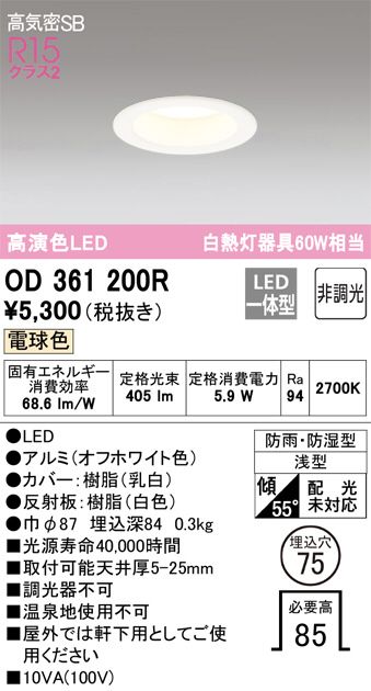 ODELIC ¥ª¡¼¥Ç¥ê¥Ã¥¯ ¥Ð¥¹¥ë¡¼¥à¥é¥¤¥È OD361200R