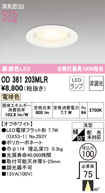 ODELIC ¥ª¡¼¥Ç¥ê¥Ã¥¯ ¥À¥¦¥ó¥é¥¤¥È OD361203MLR