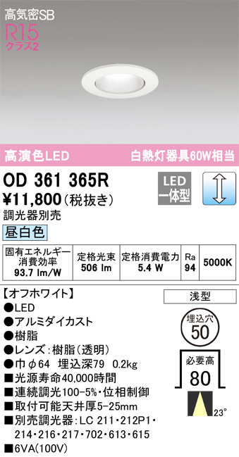 ODELIC ¥ª¡¼¥Ç¥ê¥Ã¥¯ ¥À¥¦¥ó¥é¥¤¥È OD361365R