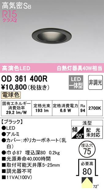 ODELIC ¥ª¡¼¥Ç¥ê¥Ã¥¯ ¥À¥¦¥ó¥é¥¤¥È OD361400R