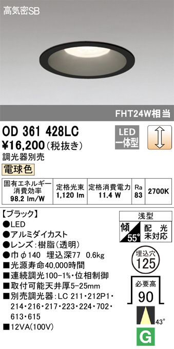 ODELIC ¥ª¡¼¥Ç¥ê¥Ã¥¯ ¥À¥¦¥ó¥é¥¤¥È OD361428LC