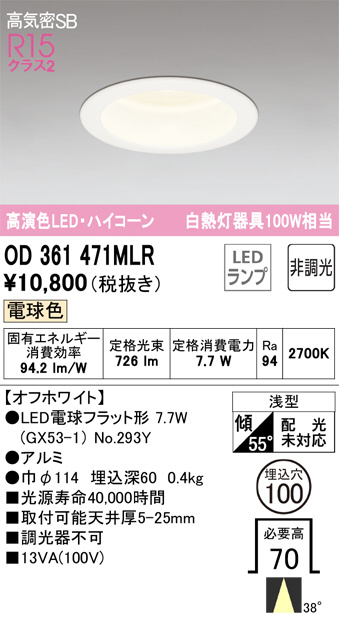 ODELIC ¥ª¡¼¥Ç¥ê¥Ã¥¯ ¥À¥¦¥ó¥é¥¤¥È OD361471MLR