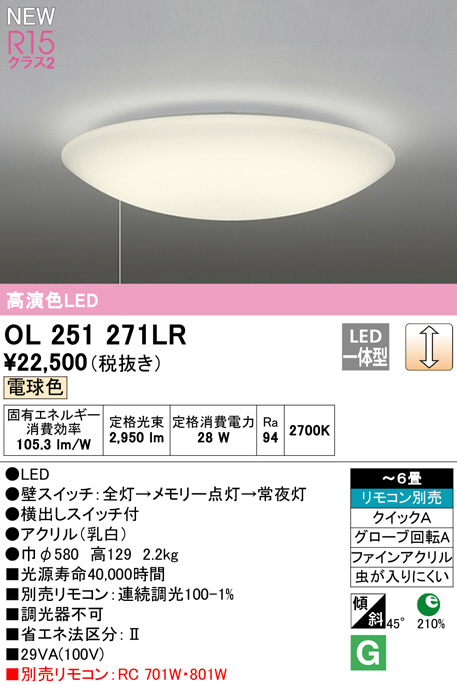 ODELIC ¥ª¡¼¥Ç¥ê¥Ã¥¯ ¥·¡¼¥ê¥ó¥°¥é¥¤¥È OL251271LR