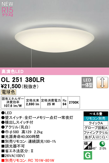 ODELIC ¥ª¡¼¥Ç¥ê¥Ã¥¯ ¥·¡¼¥ê¥ó¥°¥é¥¤¥È OL251380LR