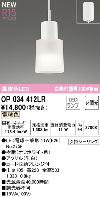 ODELIC ¥ª¡¼¥Ç¥ê¥Ã¥¯ ¥Ú¥ó¥À¥ó¥È¥é¥¤¥È OP034412LR