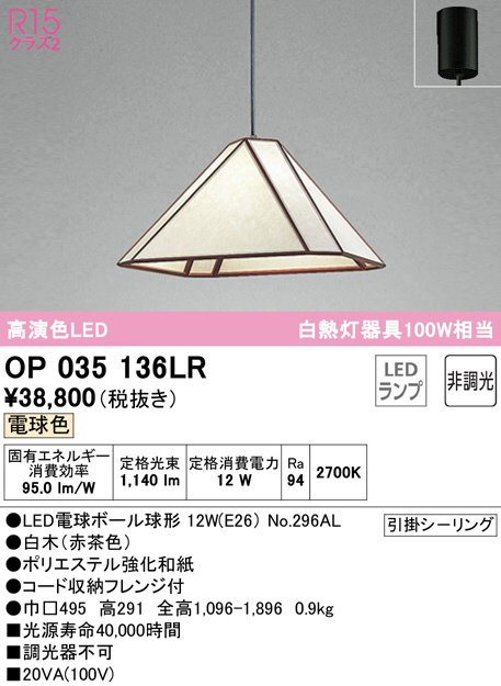 ODELIC ¥ª¡¼¥Ç¥ê¥Ã¥¯ ¥Ú¥ó¥À¥ó¥È¥é¥¤¥È OP035136LR