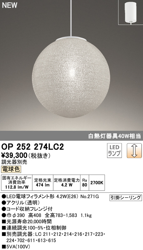 ODELIC ¥ª¡¼¥Ç¥ê¥Ã¥¯ ¥Ú¥ó¥À¥ó¥È¥é¥¤¥È OP252274LC2