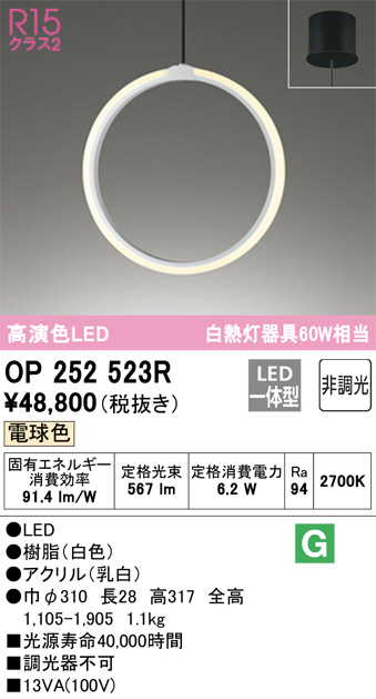 ODELIC ¥ª¡¼¥Ç¥ê¥Ã¥¯ ¥Ú¥ó¥À¥ó¥È¥é¥¤¥È OP252523R