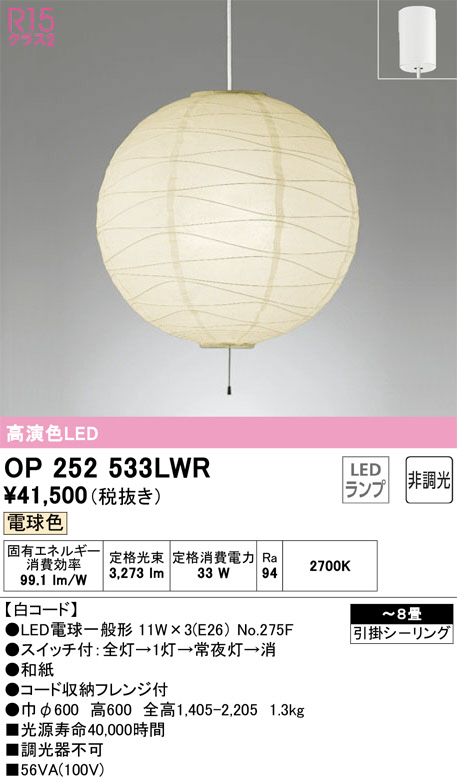 ODELIC ¥ª¡¼¥Ç¥ê¥Ã¥¯ ¥Ú¥ó¥À¥ó¥È¥é¥¤¥È OP252533LWR