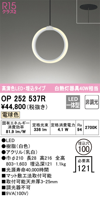 ODELIC ¥ª¡¼¥Ç¥ê¥Ã¥¯ ¥Ú¥ó¥À¥ó¥È¥é¥¤¥È OP252537R