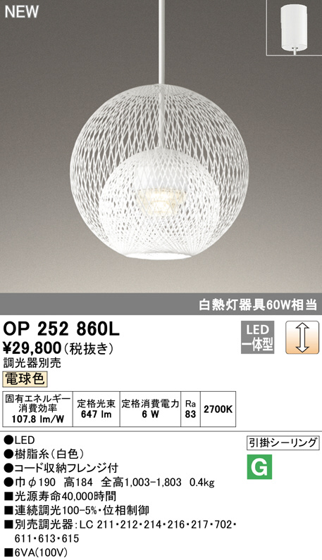 ODELIC ¥ª¡¼¥Ç¥ê¥Ã¥¯ ¥Ú¥ó¥À¥ó¥È¥é¥¤¥È OP252860L