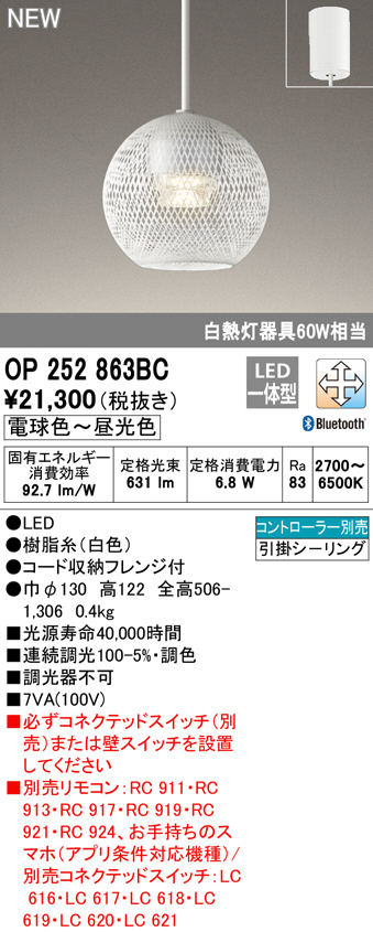 ODELIC ¥ª¡¼¥Ç¥ê¥Ã¥¯ ¥Ú¥ó¥À¥ó¥È¥é¥¤¥È OP252863BC