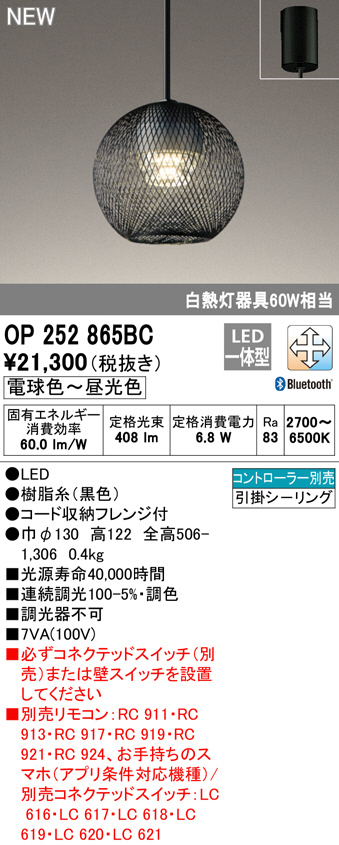 ODELIC ¥ª¡¼¥Ç¥ê¥Ã¥¯ ¥Ú¥ó¥À¥ó¥È¥é¥¤¥È OP252865BC