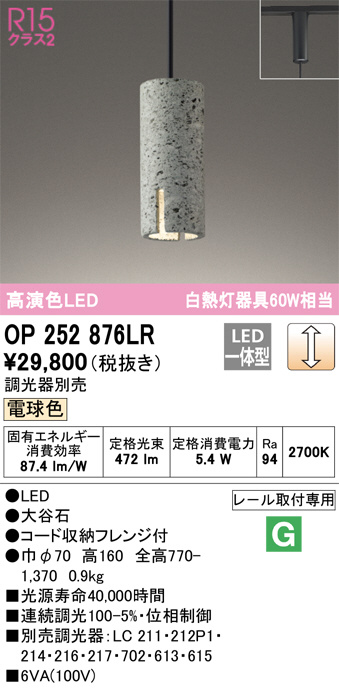 ODELIC ¥ª¡¼¥Ç¥ê¥Ã¥¯ ¥Ú¥ó¥À¥ó¥È¥é¥¤¥È OP252876LR