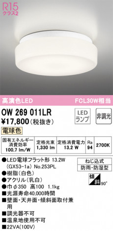 ODELIC ¥ª¡¼¥Ç¥ê¥Ã¥¯ ¥Ð¥¹¥ë¡¼¥à¥é¥¤¥È OW269011LR