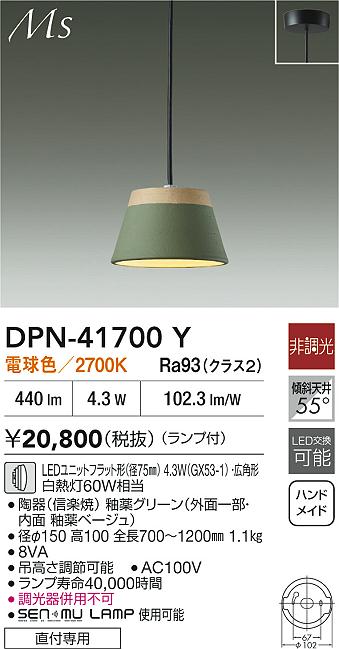 DAIKO Âç¸÷Åŵ¡ ¾®·¿¥Ú¥ó¥À¥ó¥È DPN-41700Y