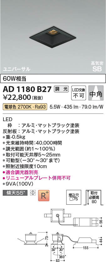 Koizumi ¥³¥¤¥º¥ß¾ÈÌÀ LED¹âµ¤Ì©SB¥æ¥Ë¥Ð¡¼¥µ¥ë¥À¥¦¥ó¥é¥¤¥È AD1180B27