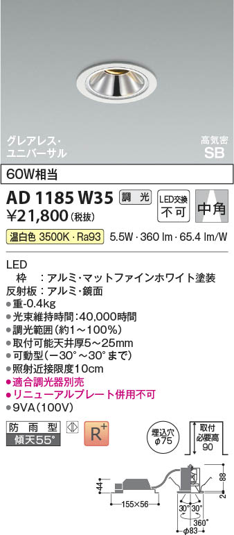 Koizumi ¥³¥¤¥º¥ß¾ÈÌÀ LED¹âµ¤Ì©SB¥æ¥Ë¥Ð¡¼¥µ¥ë¥À¥¦¥ó¥é¥¤¥È AD1185W35