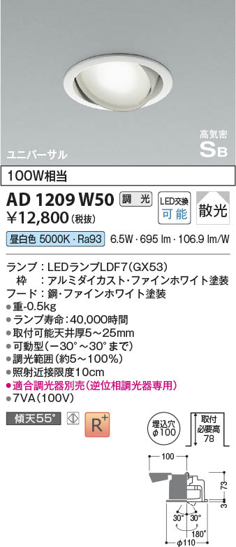 Koizumi ¥³¥¤¥º¥ß¾ÈÌÀ ¹âµ¤Ì©SB¥æ¥Ë¥Ð¡¼¥µ¥ë¥À¥¦¥ó¥é¥¤¥È AD1209W50
