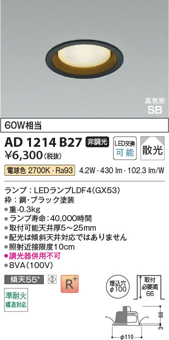 Koizumi ¥³¥¤¥º¥ß¾ÈÌÀ LED¹âµ¤Ì©SB¥À¥¦¥ó¥é¥¤¥È AD1214B27