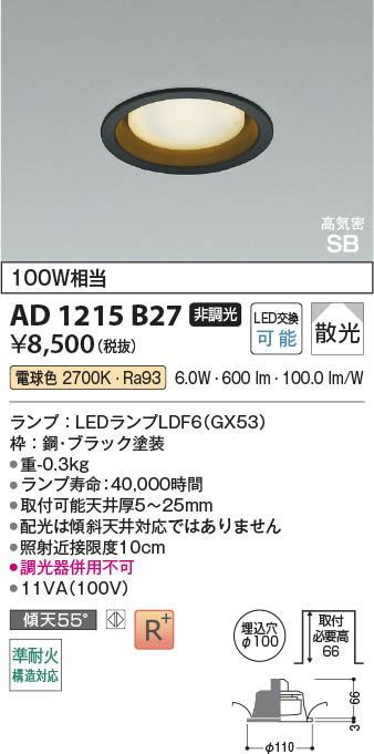 Koizumi ¥³¥¤¥º¥ß¾ÈÌÀ LED¹âµ¤Ì©SB¥À¥¦¥ó¥é¥¤¥È AD1215B27